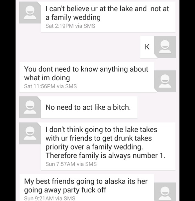 4. Hazing. Every minute spent together is spent hazing one another. If you guys are bored from just day boozing and sitting around on the porch at a BBQ all day then you automatically think to yell across the patio, “Sam! Finish your beer!” and she doesn’t ask any questions or even hesitate before she starts just chugging her beer. She then reciprocates by Smirnoff “icing you.”